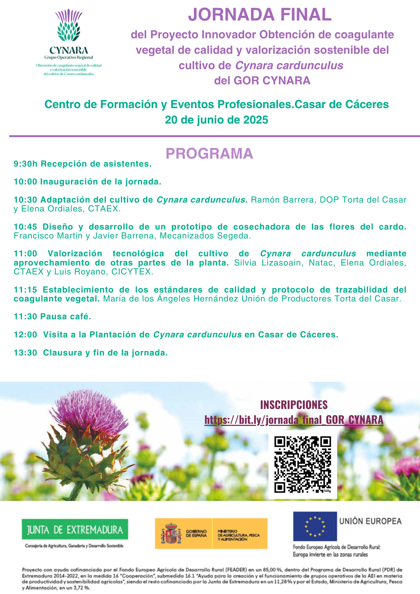 El proyecto ha sido desarrollado por el Grupo Operativo regional CYNARA. El objetivo es adaptar agronómicamente y valorizar el cultivo del cardo C. cardunculus para la obtención y comercialización de coagulante vegetal de calidad, en la zona de influencia de la DOP Torta del Casar, cumpliendo las normativas europeas y de la propia DOP, así como las exigencias de productores de queso y consumidores en materia de trazabilidad y seguridad alimentaria.