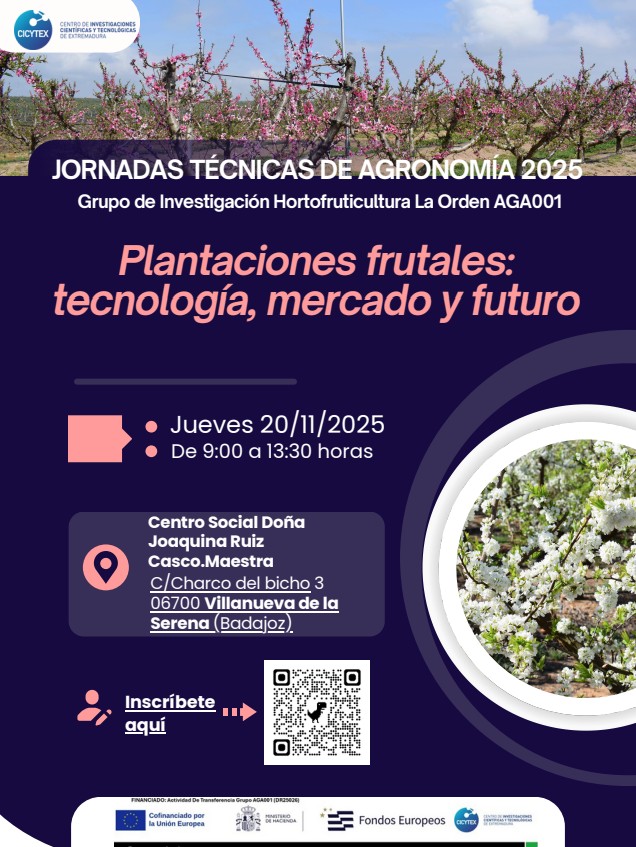 La jornada está organizada por el grupo de investigación Hortofruticultura La Orden, de CICYTEX, con el fin de transferir al sector técnicas de agronomía, en este caso, en plantaciones frutales y el uso de tecnologías aplicadas al campo.