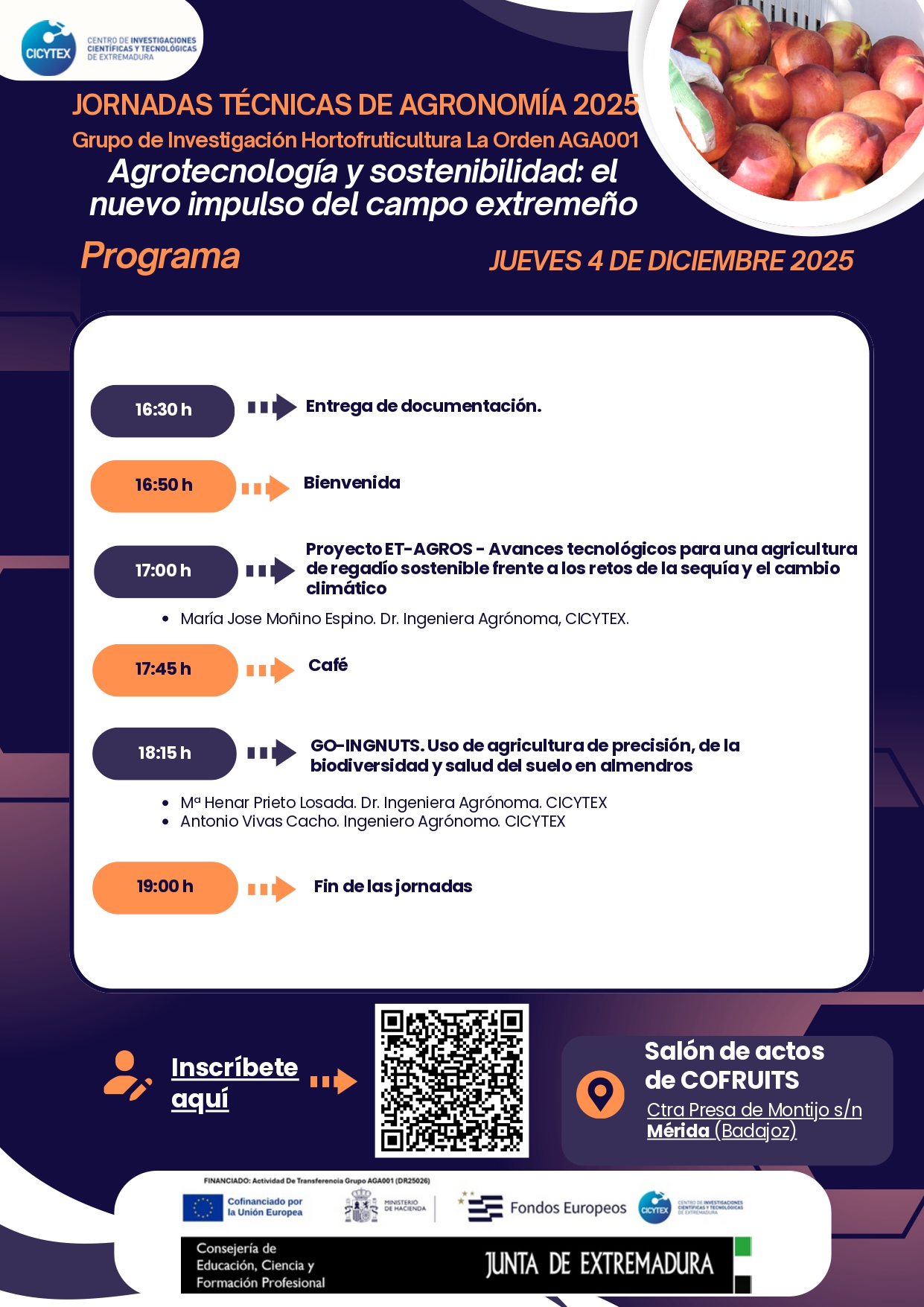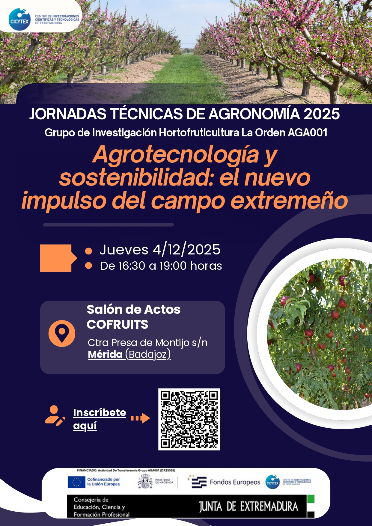 El Centro de Investigaciones Científicas y Tecnológicas de Extremadura (CYCITEX) organiza esta jornada dentro de las Jornadas Técnicas de Agronomía 2025