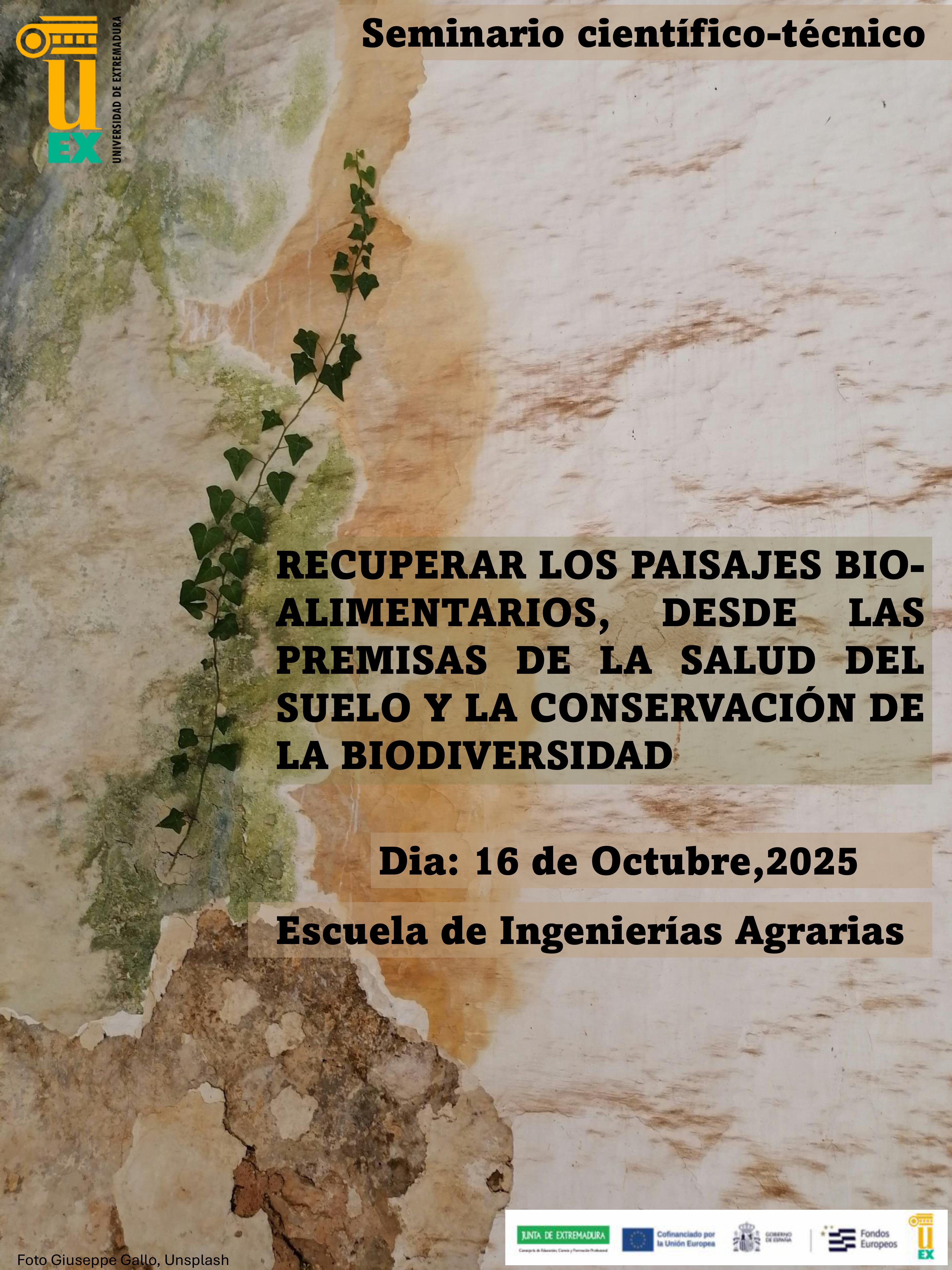 La Universidad de Extremadura (UEx) organiza el seminario científico-técnico ‘Recuperar los paisajes bio-alimentarios, desde las premisas de la salud del suelo y la conservación de la biodiversidad’, que se celebrará en la Escuela de Ingenierías Agrarias.