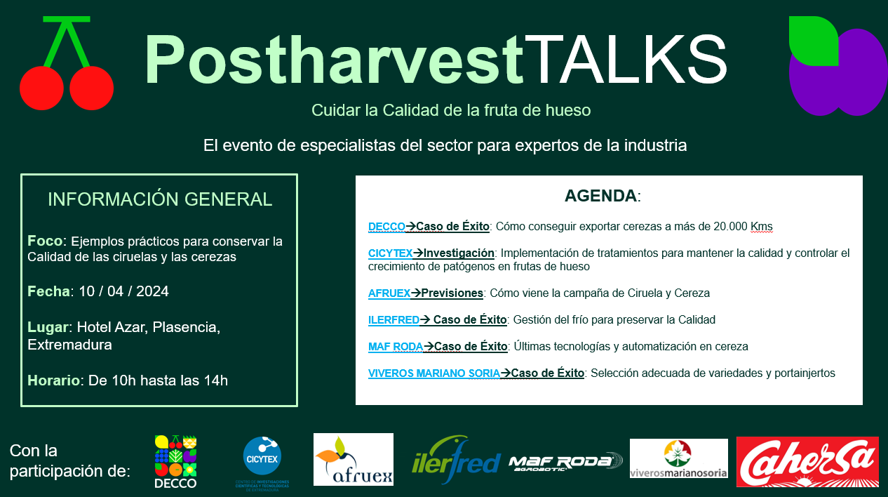 La empresa DECCO Ibérica organiza este evento con el objeto de reunir a especialistas del sector de la fruta de hueso para abordar la calidad de cereza y ciruela, entre otros temas.