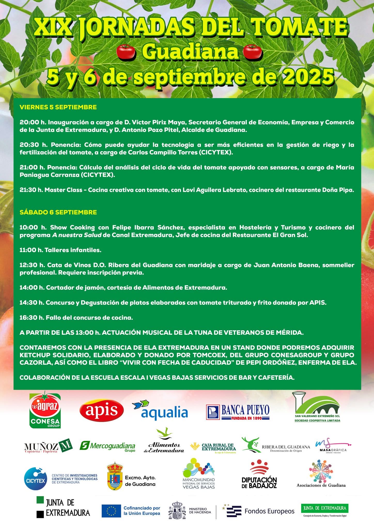 Estas jornadas están organizadas por el Ayuntamiento de Guadiana y la Diputación de Badajoz, cuya finalidad es potenciar la imagen del tomate como un producto esencial de Extremadura y con un peso crucial tanto a nivel económico como gastronómico y cultural.